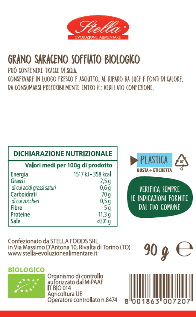 Grano Saraceno Soffiato di Stella Foods è un alimento naturale, ideale per una colazione buona e genuina.
